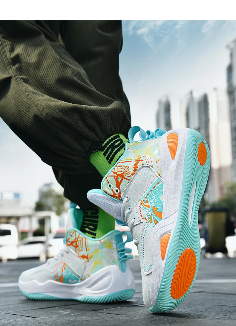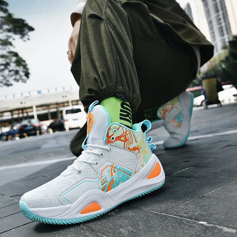 Actors on the court will feel the difference from the moment you lace up. These high-top basketball sneakers combine a cushioned, responsive ride with rugged outdoor durability, engineered for intense play and everyday training. With a breathable fabric upper and ankle‑height support, they’re ready for spring through winter and built to handle concrete, asphalt, and indoor hardwood alike.