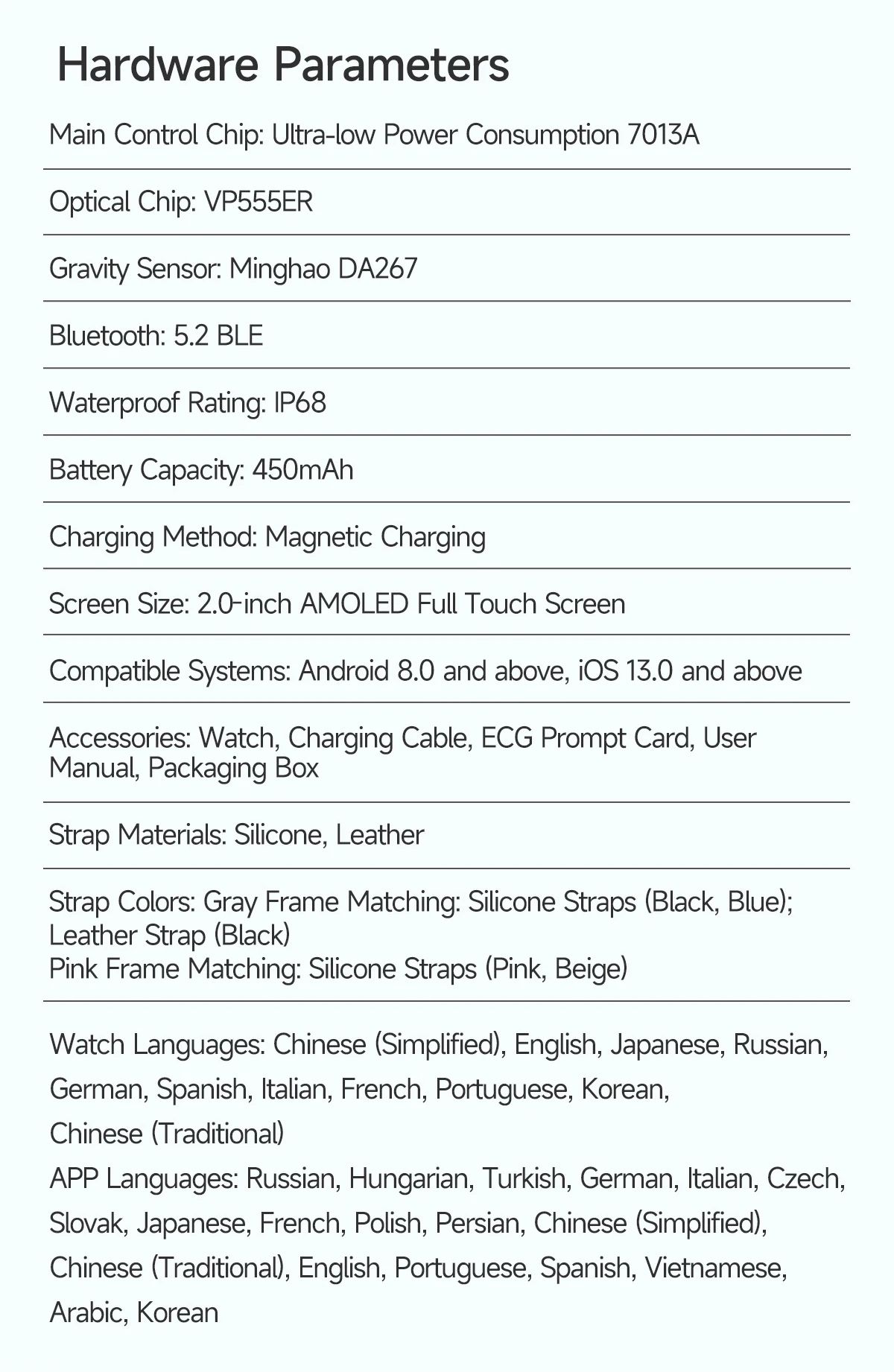 Screen Type: 320*385 AMOLED HD Sapphire Glass