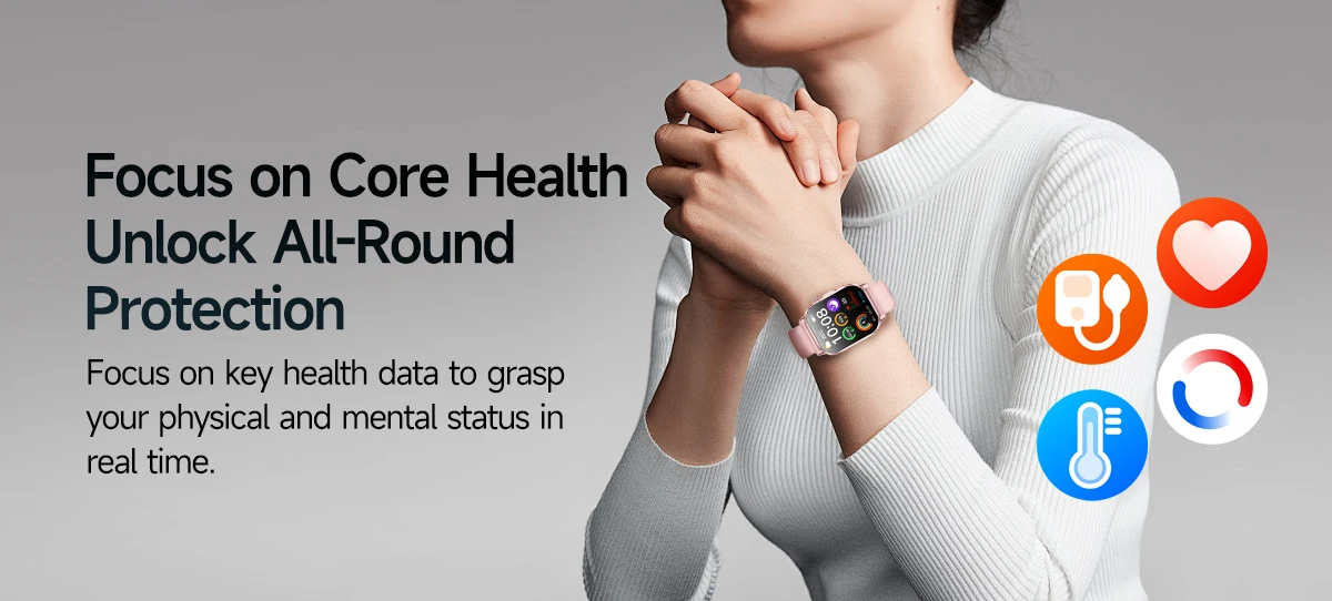 Metrics measured: Heart Rate Monitor,Women's Health Monitoring,Other,Blood Oxygen Monitor,Sleep Monitor,Blood Pressure Monitor,Body Temperature Monitor,Stress Monitor