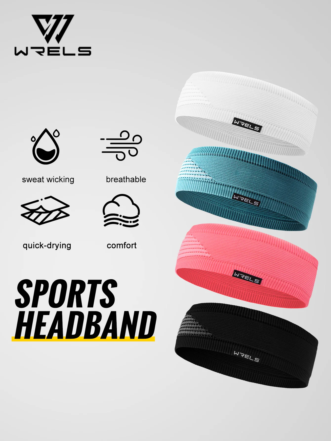WRELS Sweatband for Men and Women Wide Sweat Band Yoga Band No-Slip Workout Headbands Wicks Moisture Headband