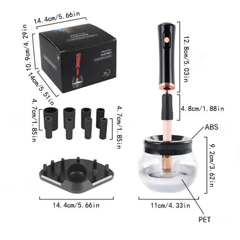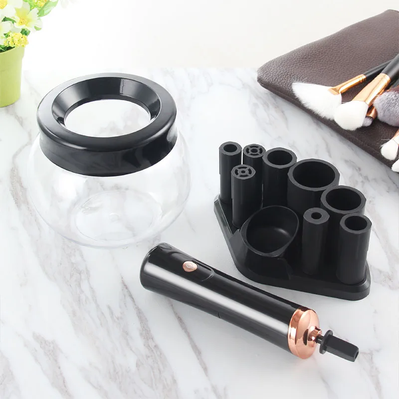 Makeup brush cleaning and drying machine, electric cosmetic automatic brush rotator, with 8 sizes of rubber collar, can be clean