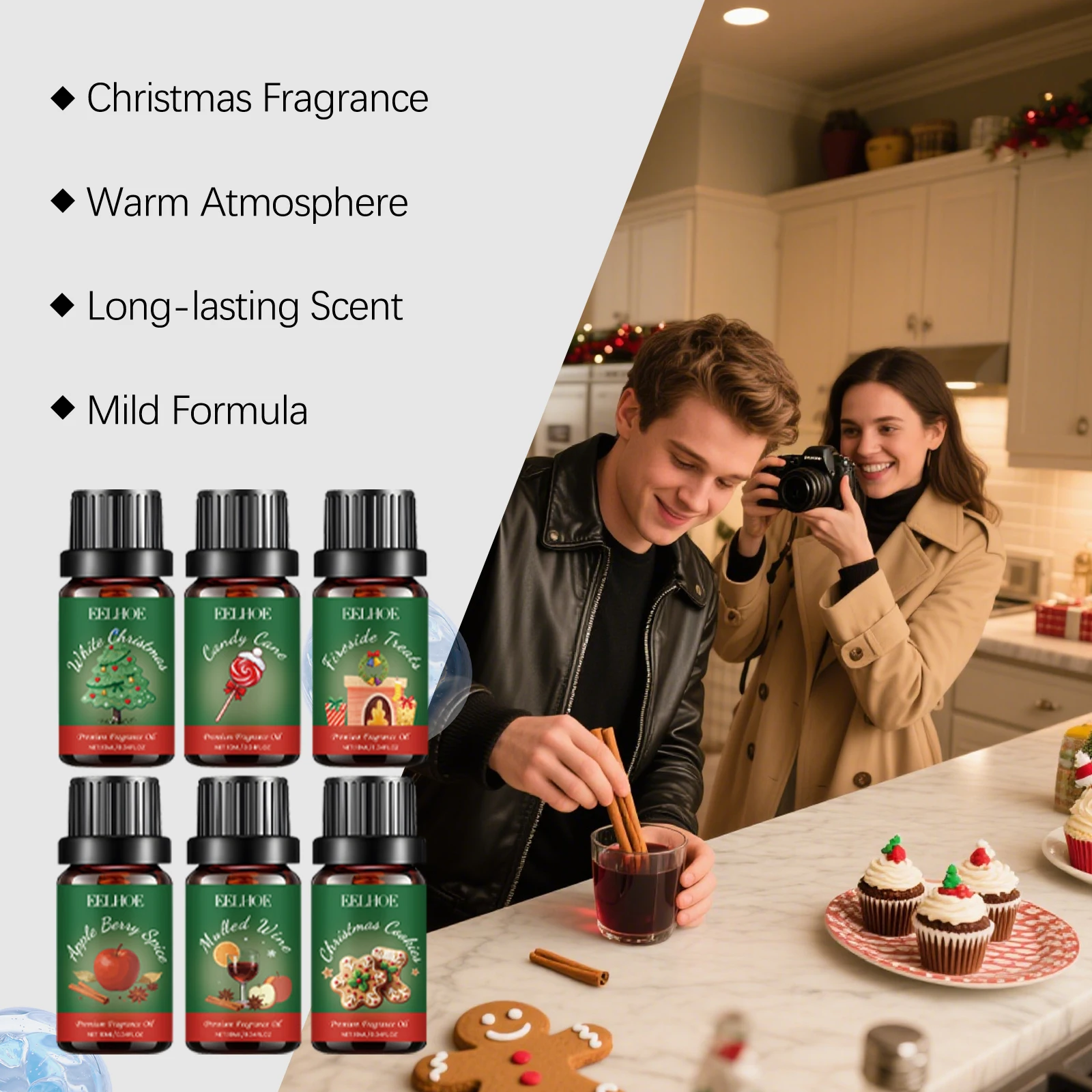 Relaxing Christmas Aromatherapy Essential Oil Set - Natural Scented Oils for Indoor Air, Stress Relief, Comfortable Holiday Mood