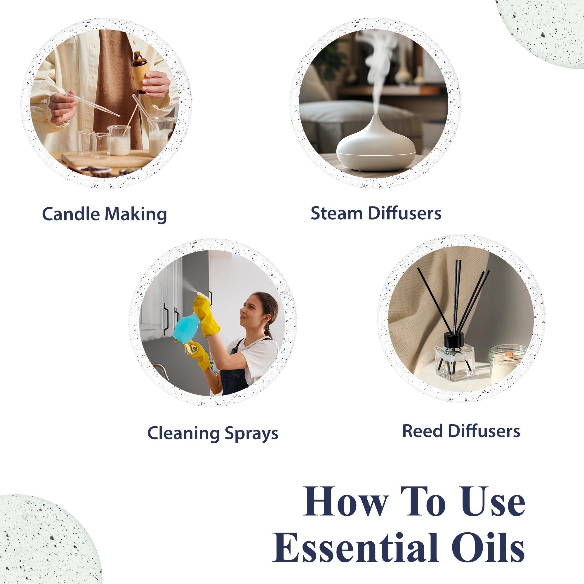 3.USE IN A DIFFUSER-Add 5–8 drops to your electronic diffuser with water to fill your room with soothing fragrance and therapeutic benefits.
