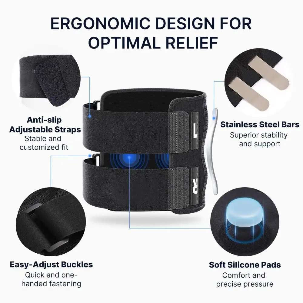 ERGONOMIC & ADJUSTABLE DESIGN: Featuring a dual-strap ergonomic design, this adjustable brace fits both legs perfectly. Built for men and women, it ensures stability, durability, and optimal therapeutic results during extended wear