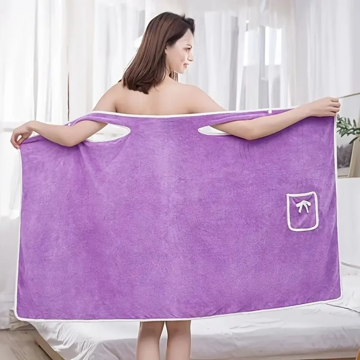 1 Pcs Women's Wearable Bath Towel - Quick-Dry Microfiber Robe for Shower, Beach & Spa - Girls-Friendly Design