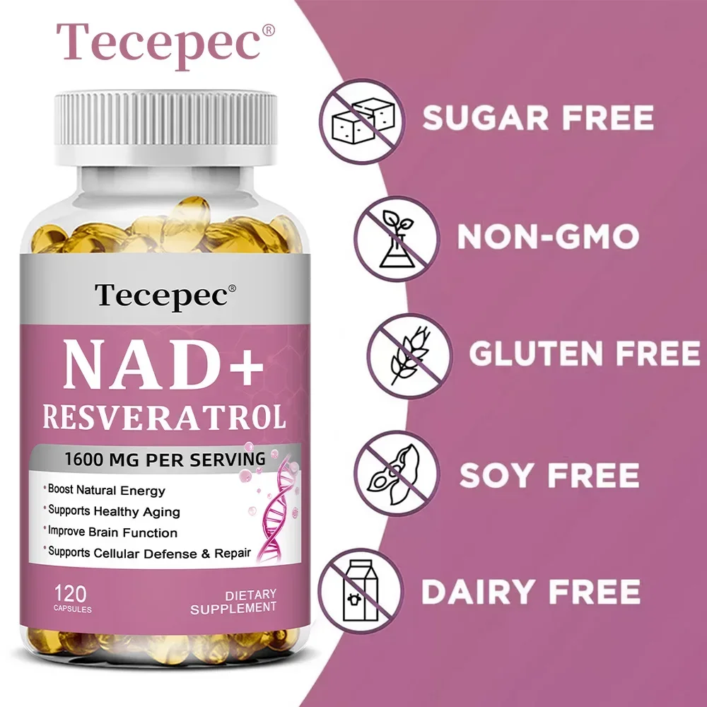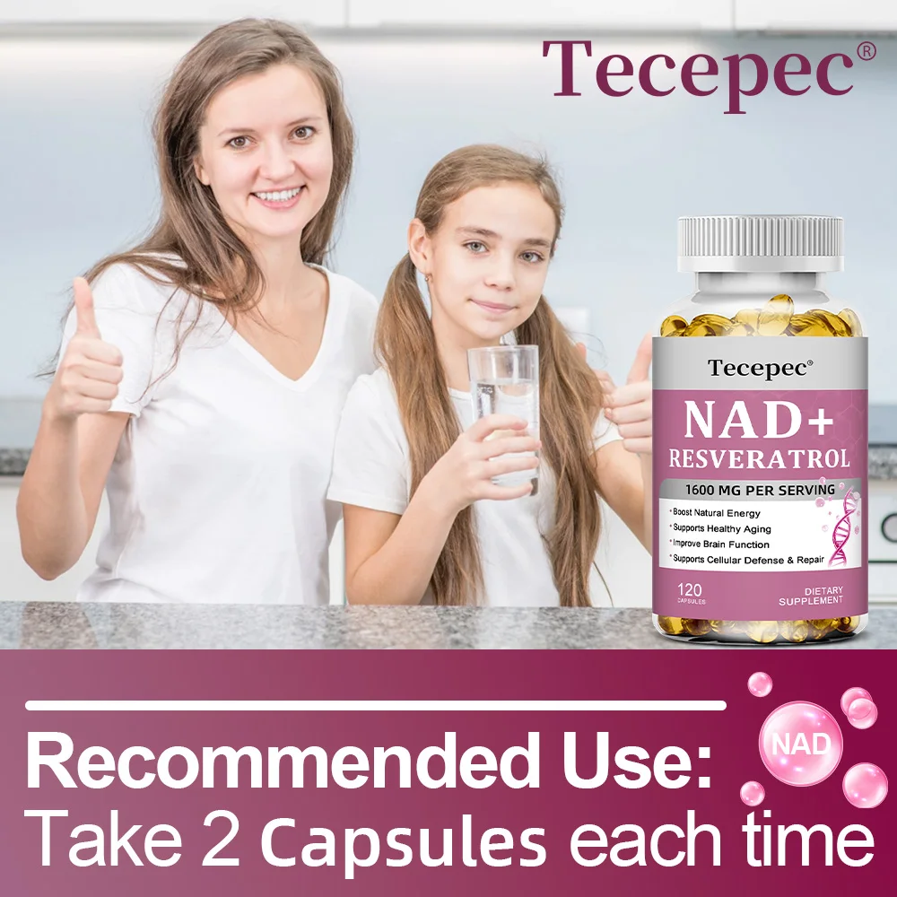 NAD+ Supplement,Anti-Aging,Boosts Energy and Focus,Supports Brain and Skin Health,Nicotinamide Adenine Dinucleotide Resveratrol
