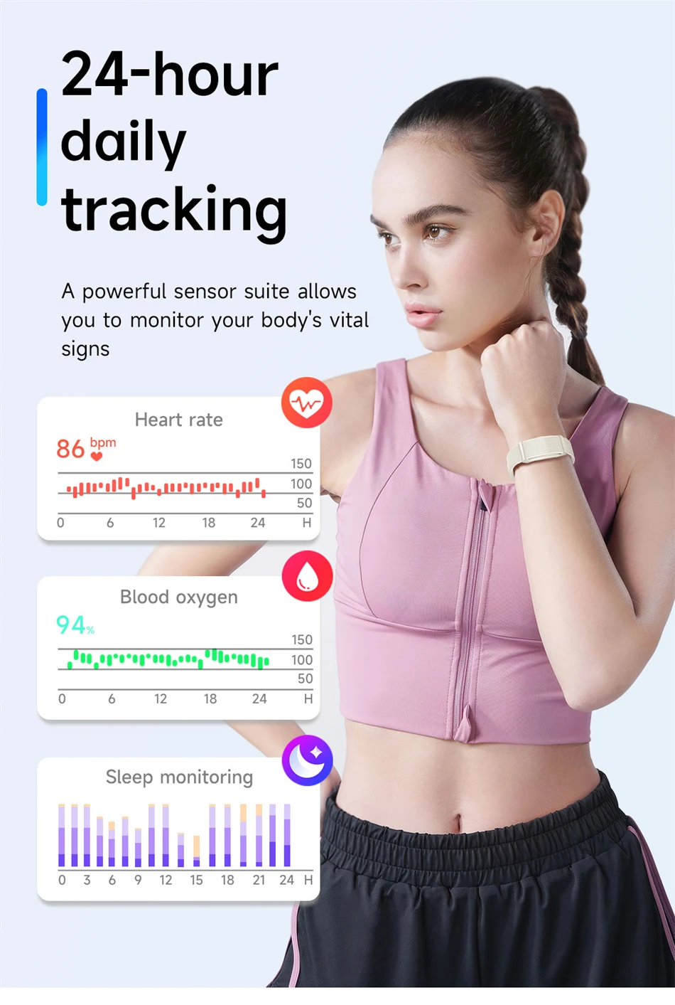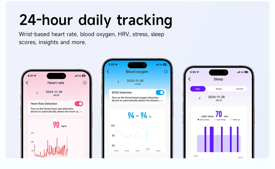 Metrics measured: Heart Rate Monitor,Women's Health Monitoring,Blood Oxygen Monitor,Sleep Monitor,Other,Body Temperature Monitor