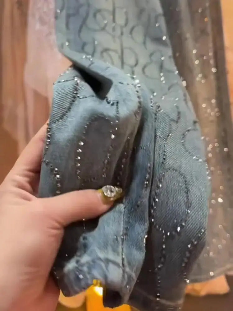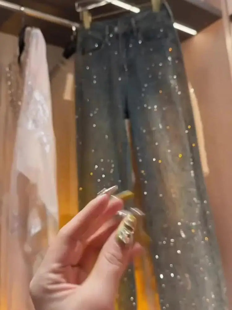 Blue Heavy Embellied Design Women's Jeans Loose Fit Straight Leg Wide Leg Pants Versatile Slimming Spring Summer New Arrival