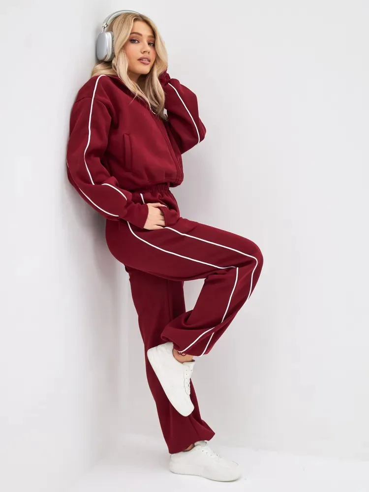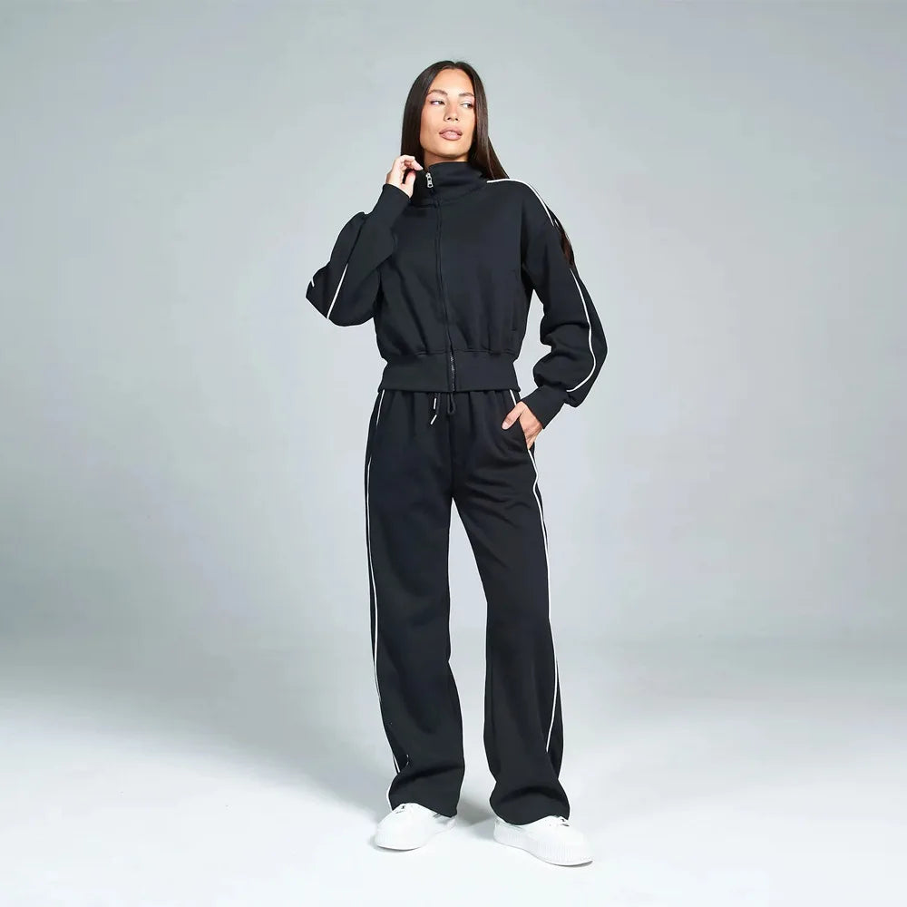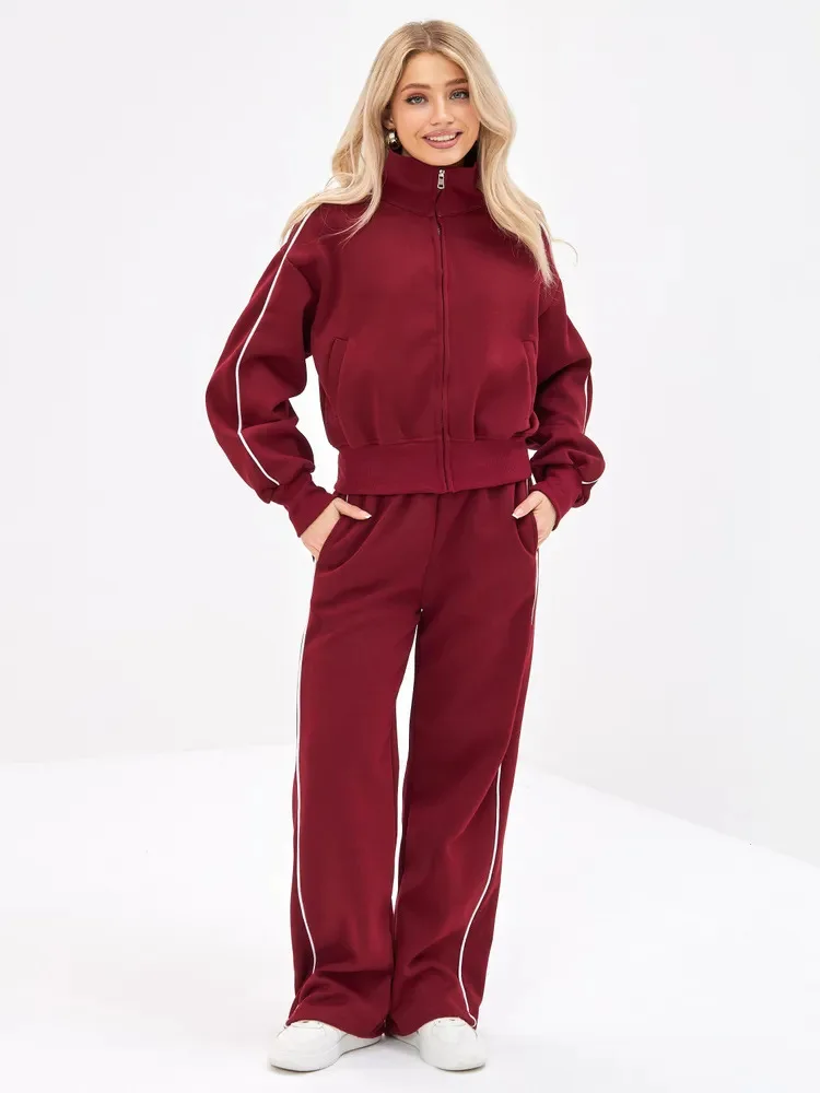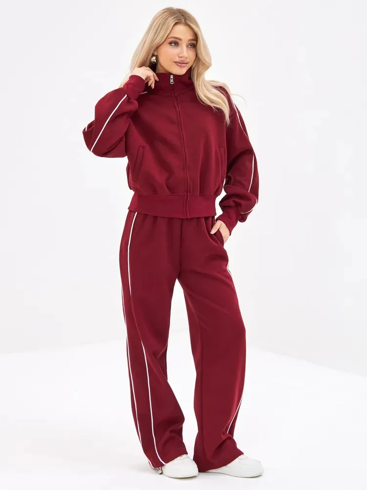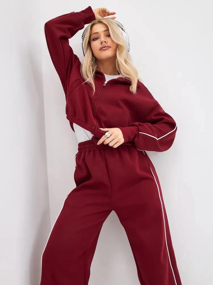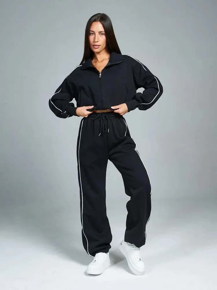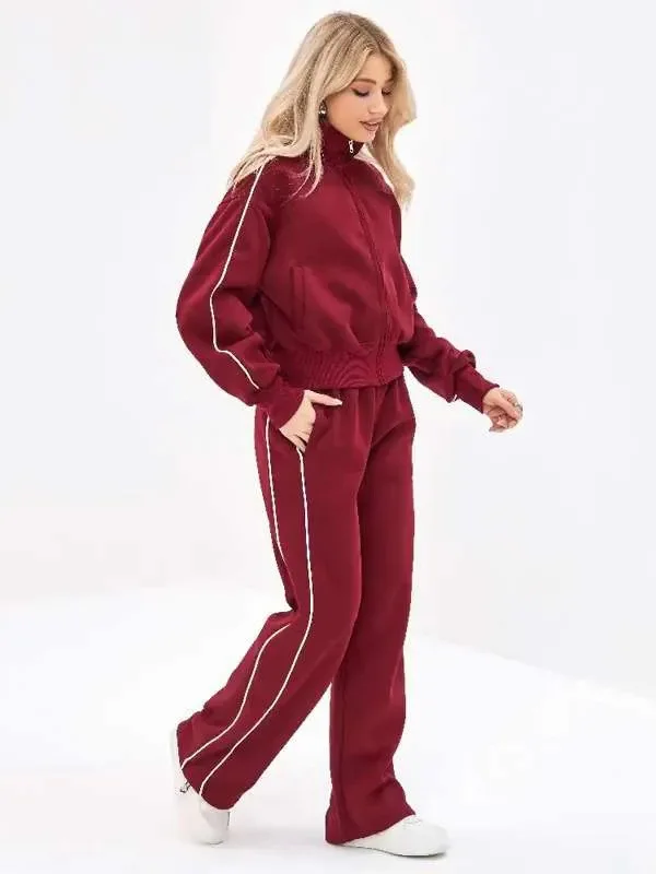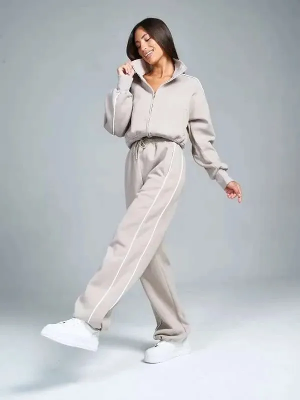 Fall 2025 Athleisure Outfit Loose Fashion Striped Sweatshirt Cardigan Trousers Set Women's Sportssuit
