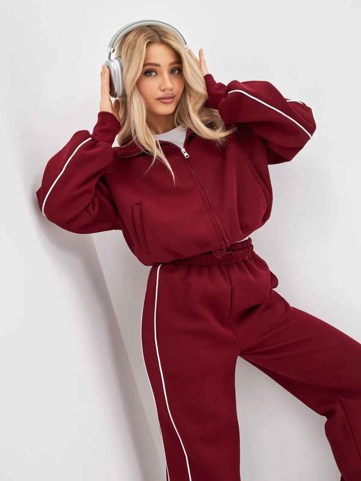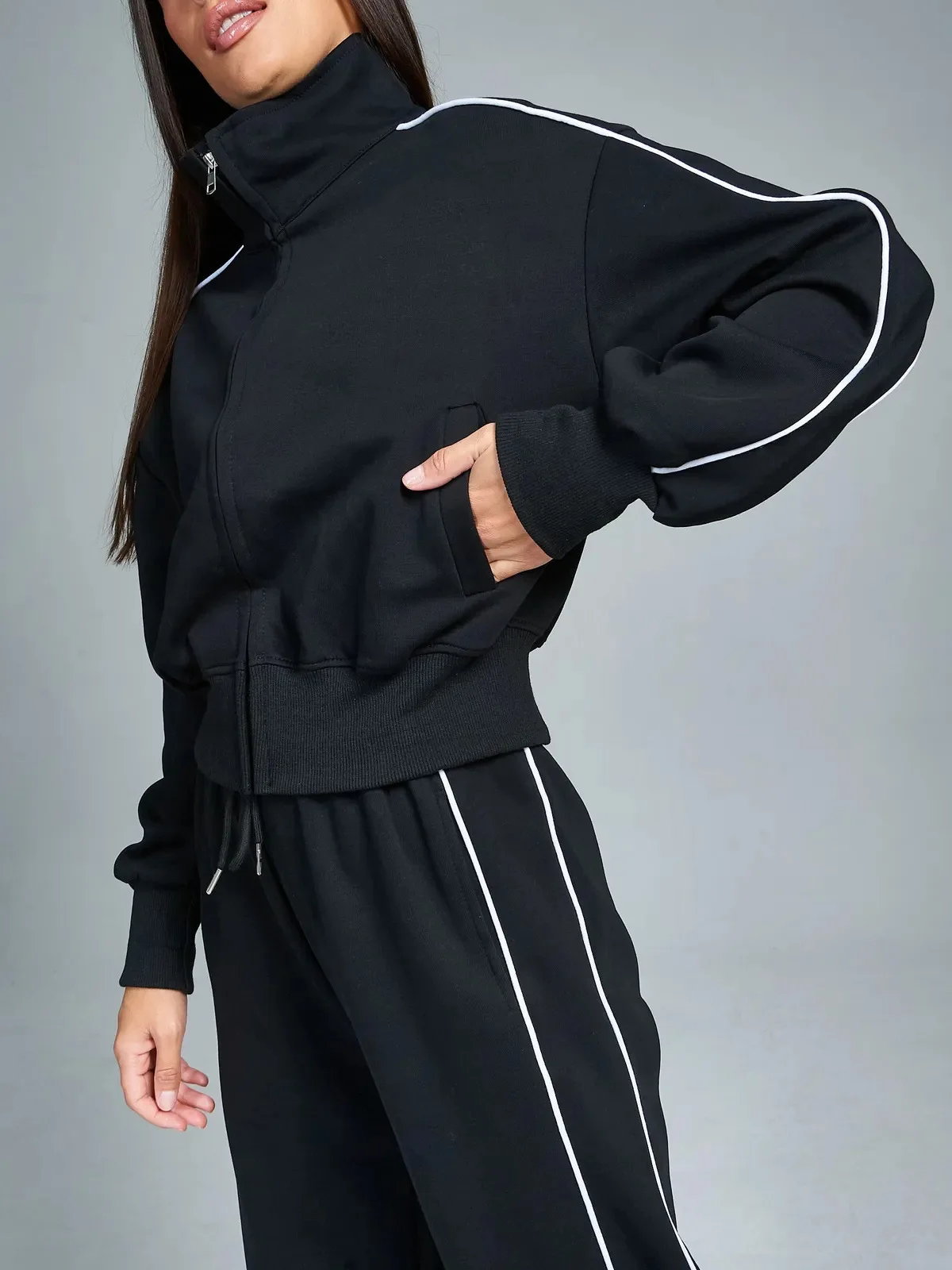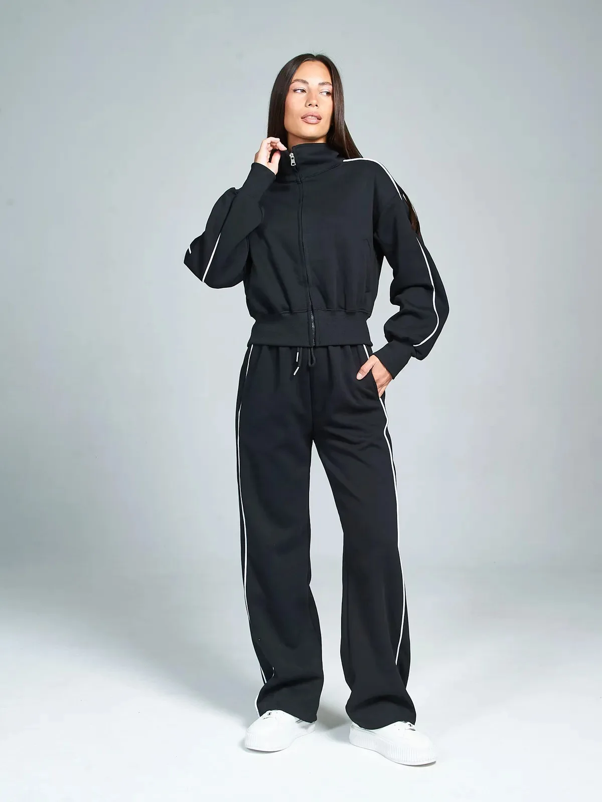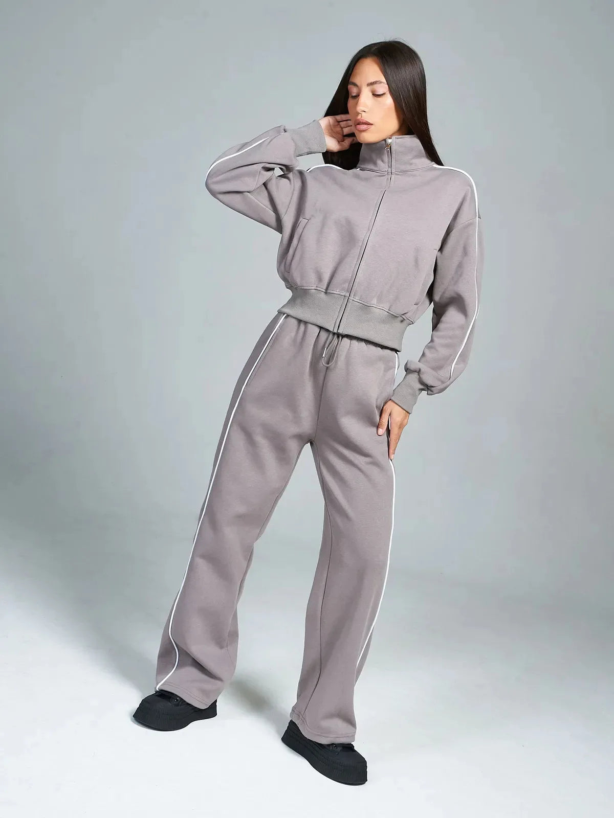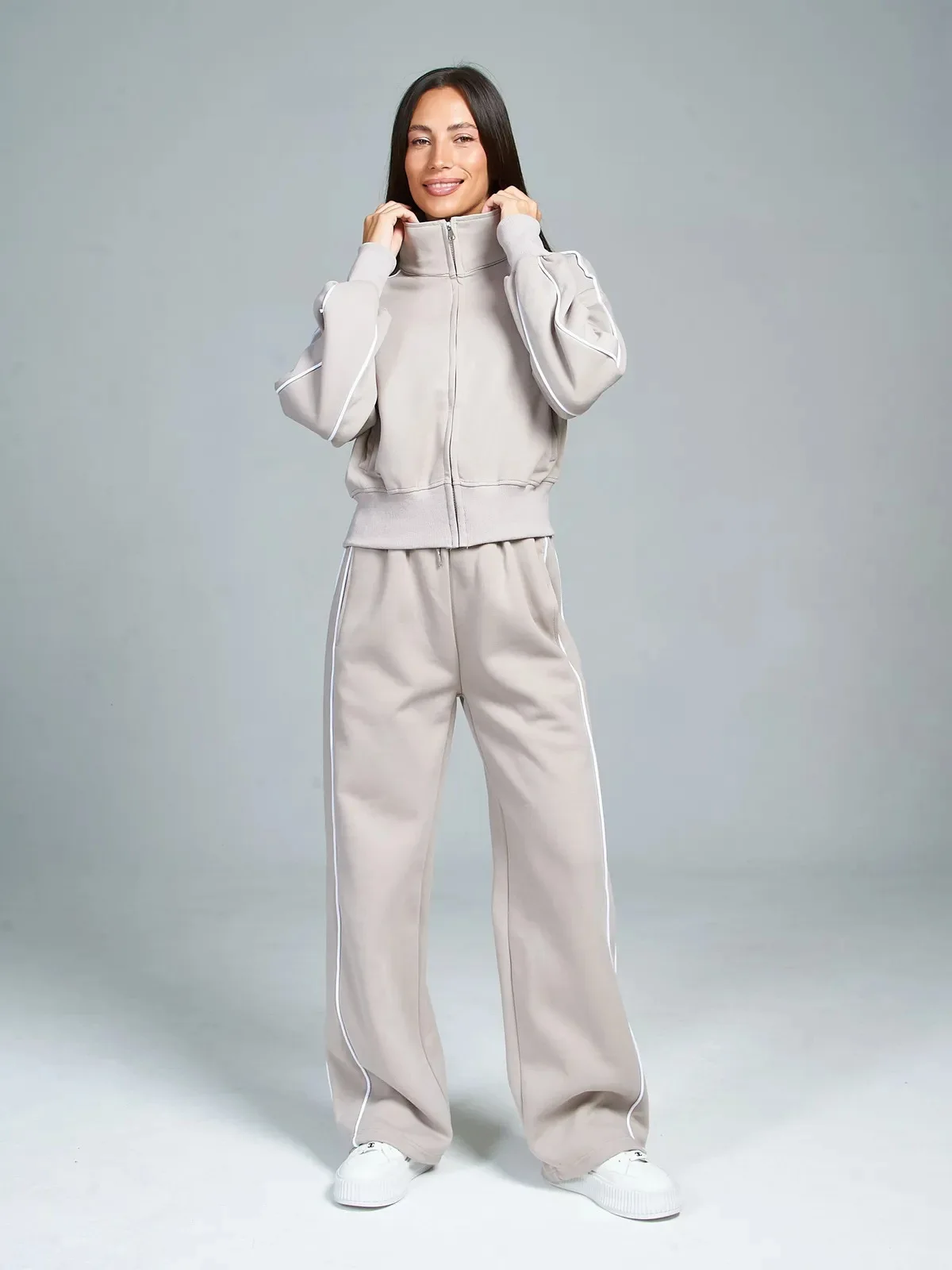 Fall 2025 Athleisure Outfit Loose Fashion Striped Sweatshirt Cardigan Trousers Set Women's Sportssuit