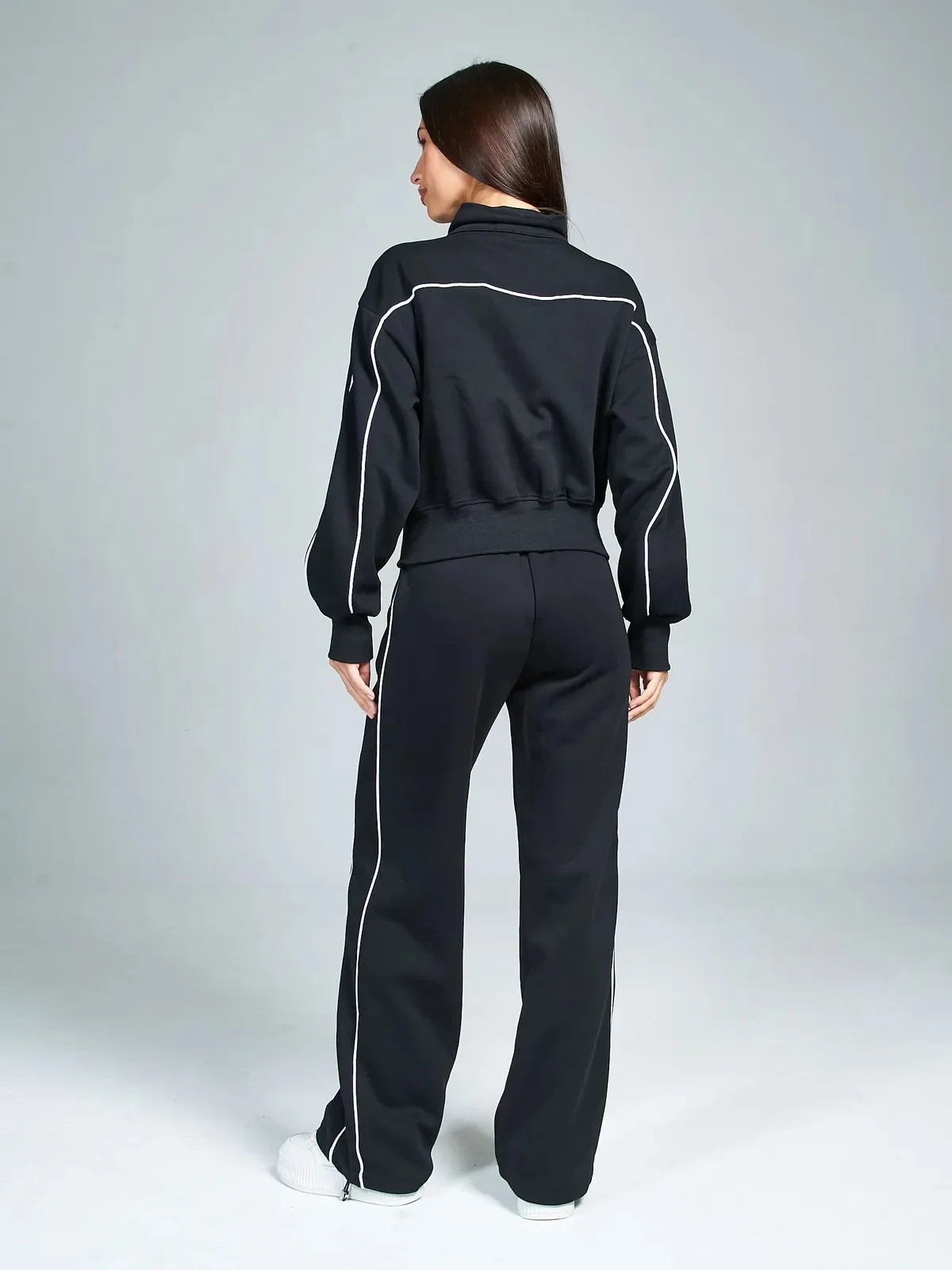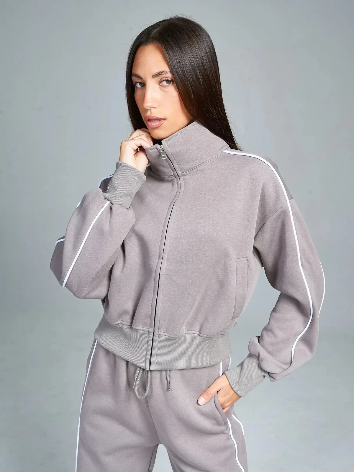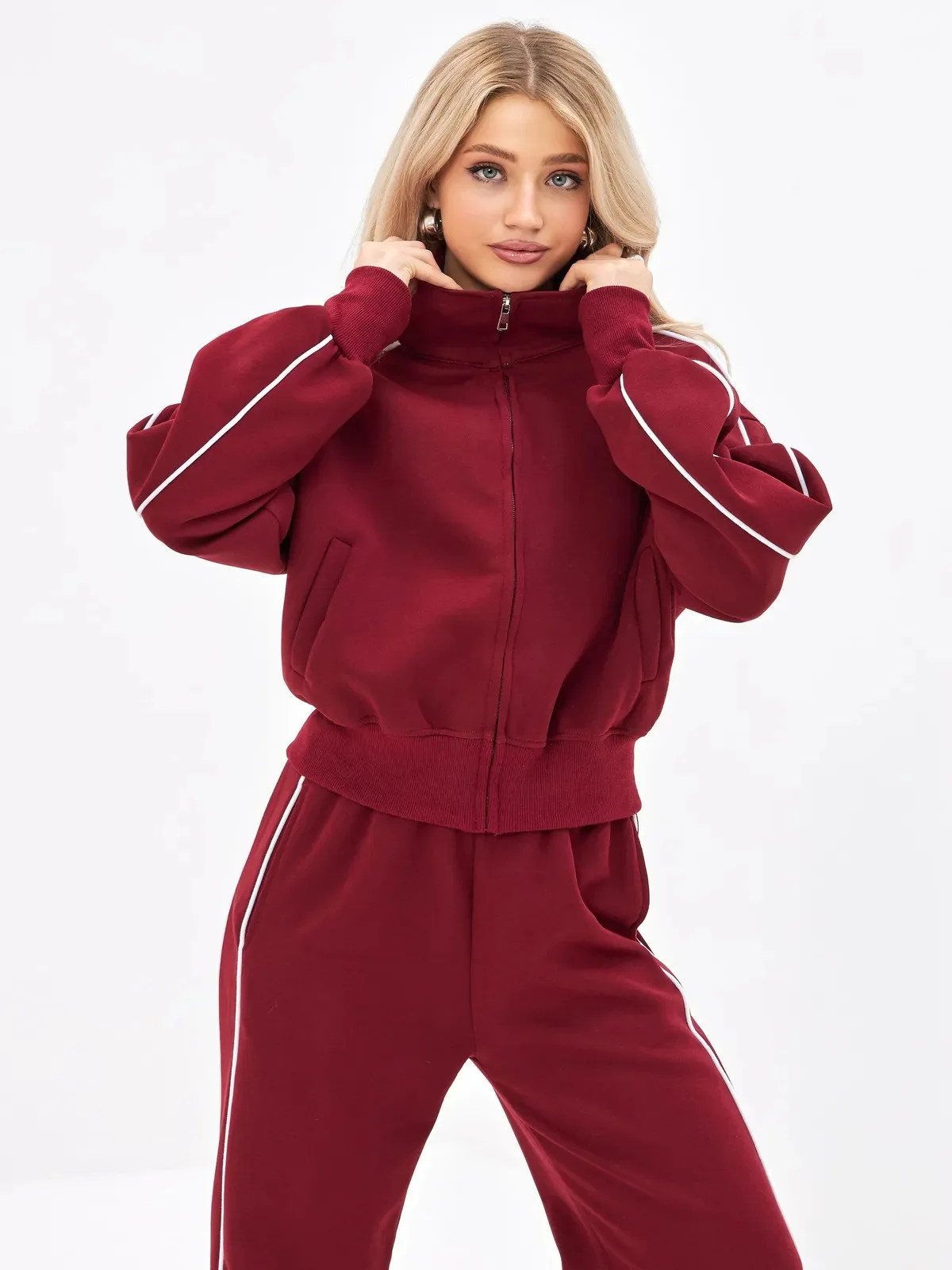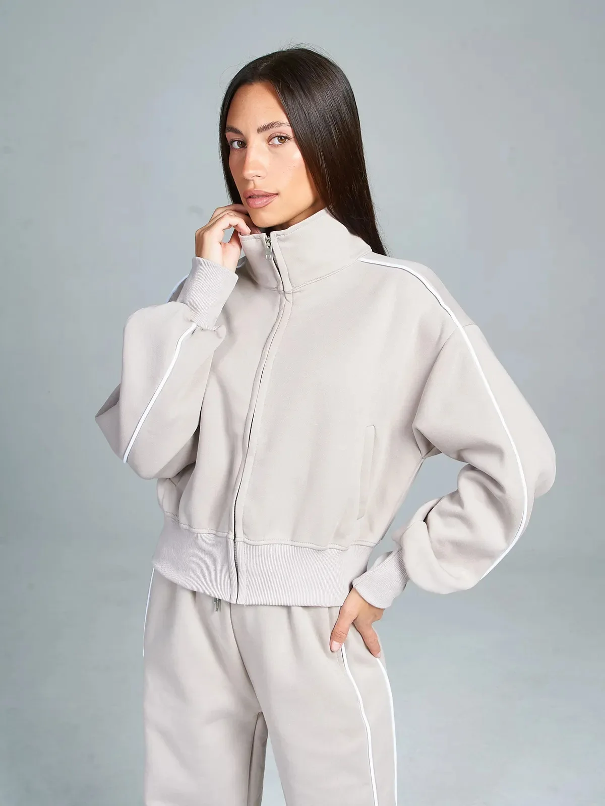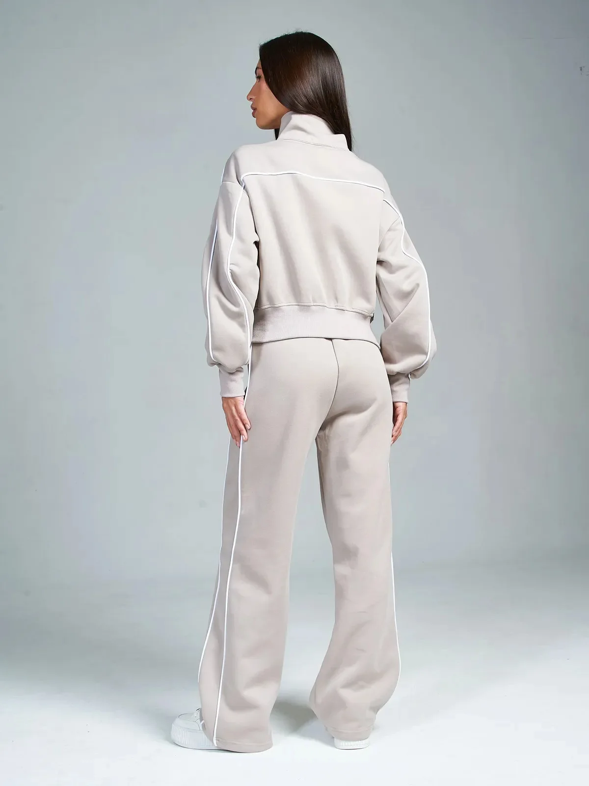 Fall 2025 Athleisure Outfit Loose Fashion Striped Sweatshirt Cardigan Trousers Set Women's Sportssuit