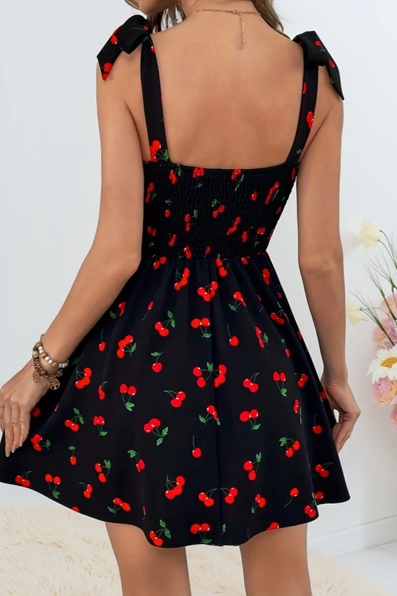 The cherry print adds a touch of elegance and femininity, perfect for spring/summer outings.