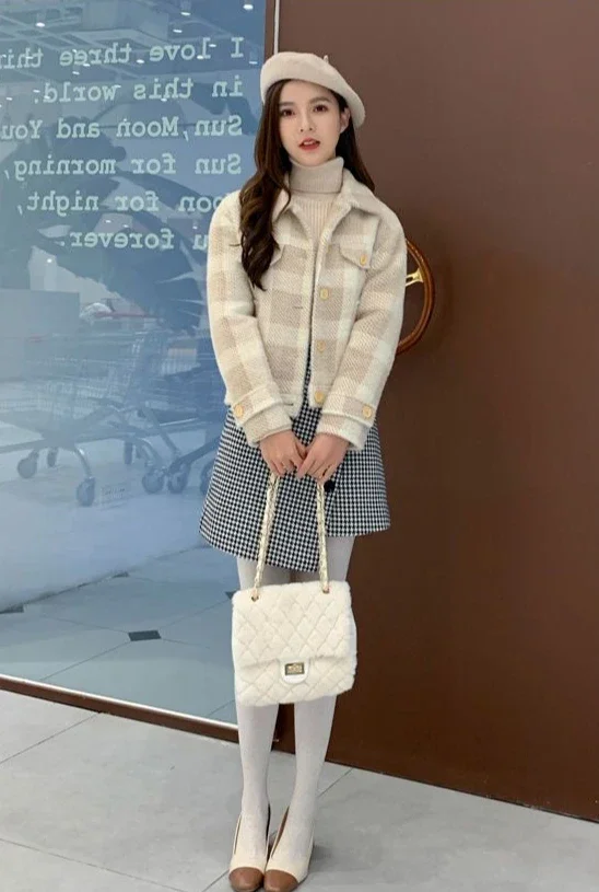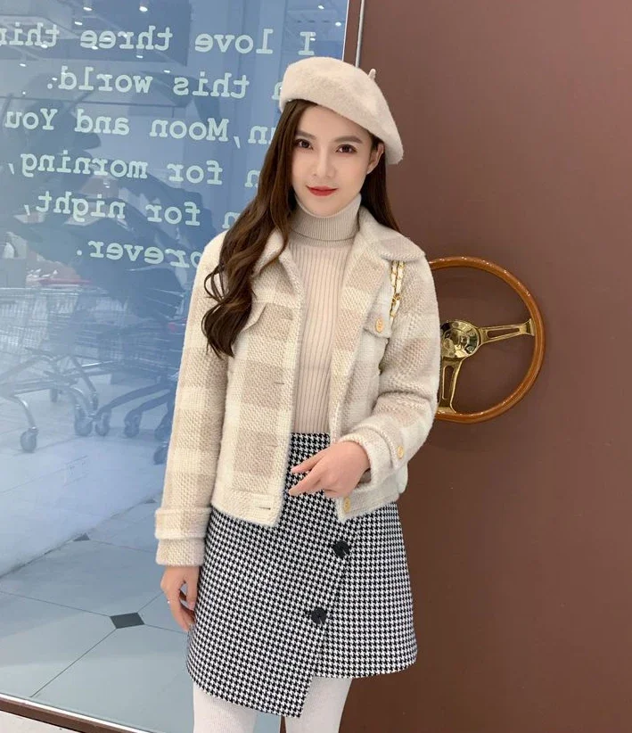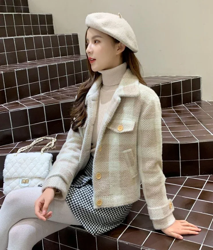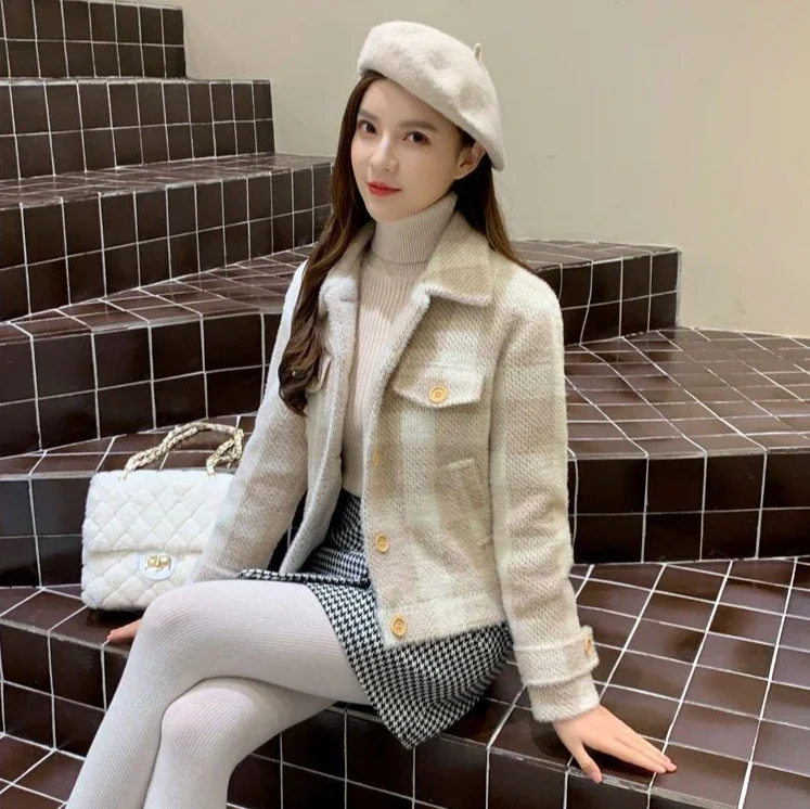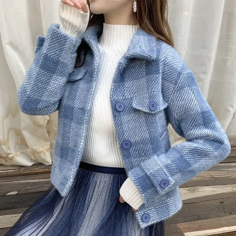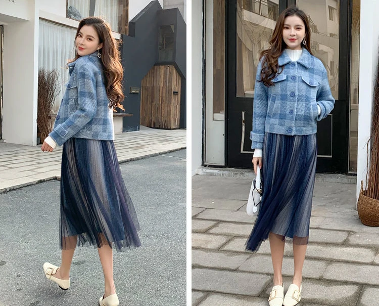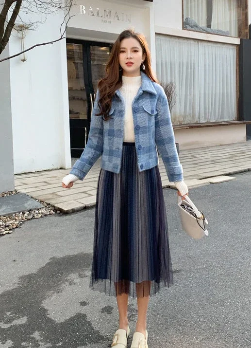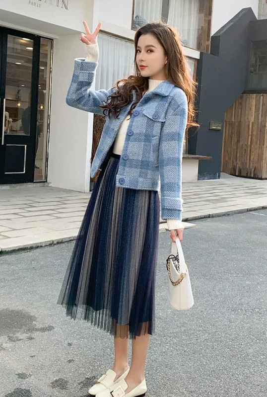 Ladies Jackets Plaid Loose Blue Outerwears Autumn Hot High Quality Women's Wool & Blends Coat Winter Clothes 2025 New In Novelty