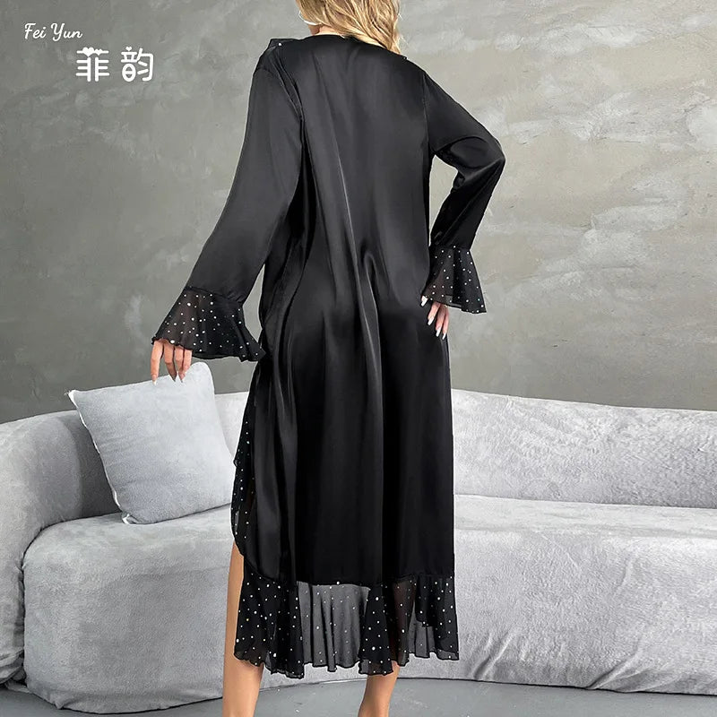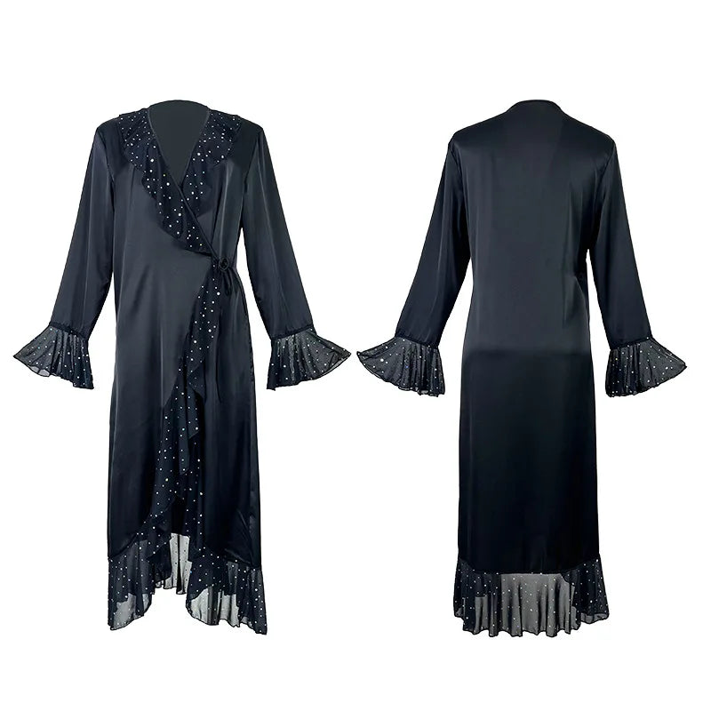 Ladies New Fashion V-neck Long-sleeved Sequined Pajamas Female Satin Nightgown Home Clothes Pijamas Women