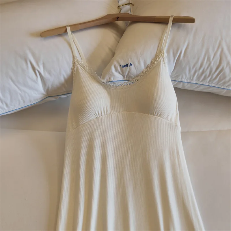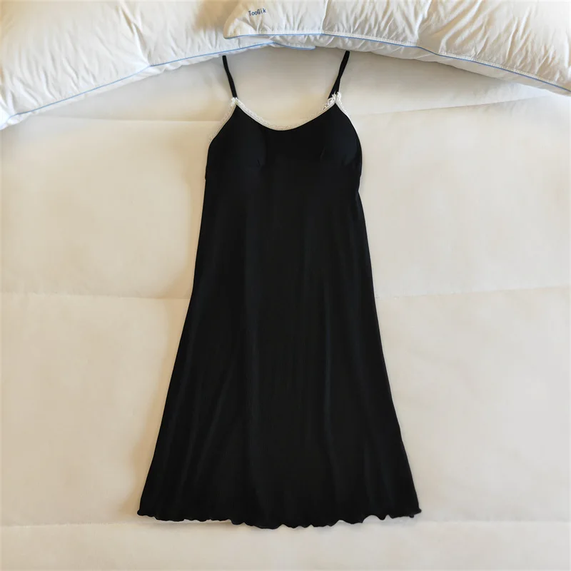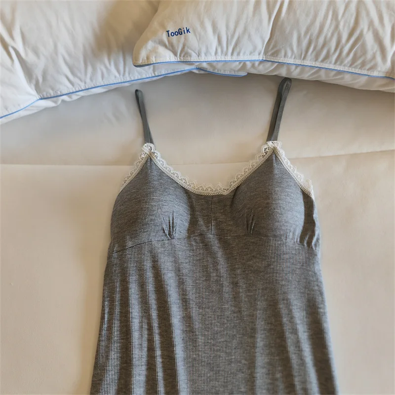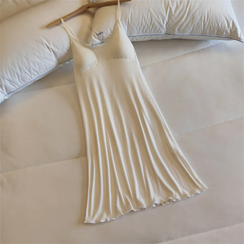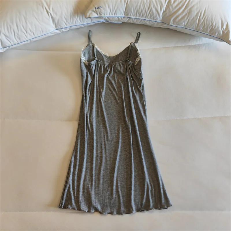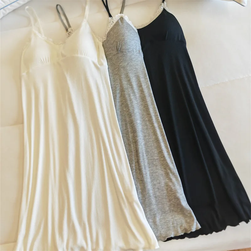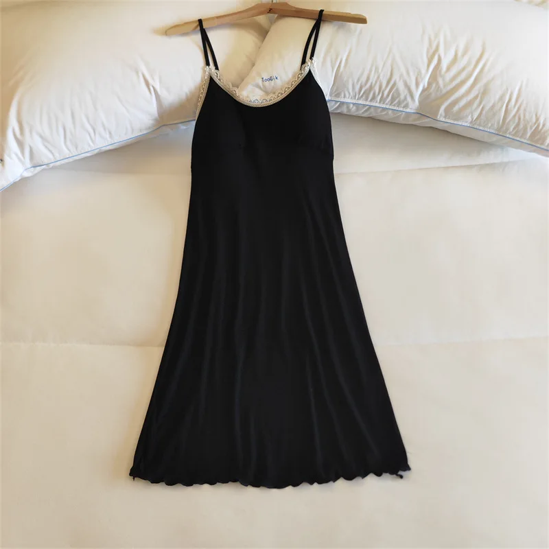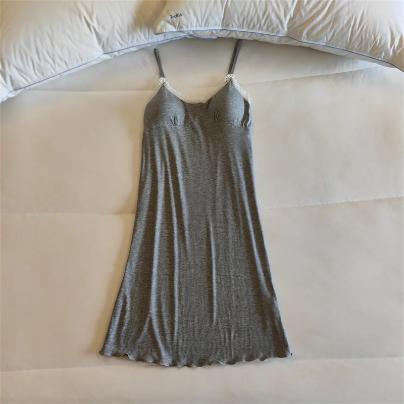 Ladies Summer Nightdress Sexy V-neck Lace Camisole Nightgown Chest Pad Home Wear Sling Dress Modal Comfort Night Shirt Women