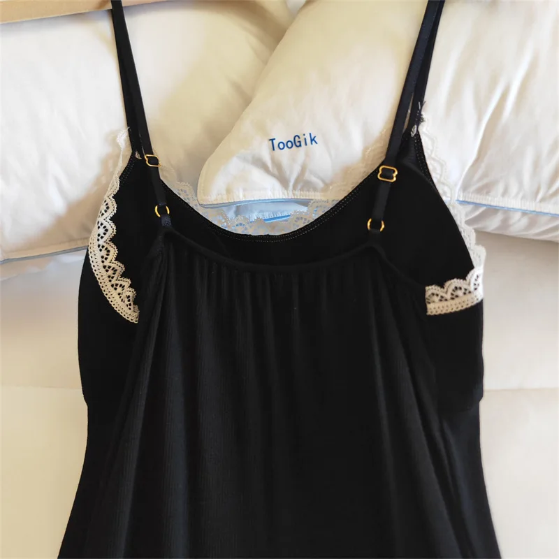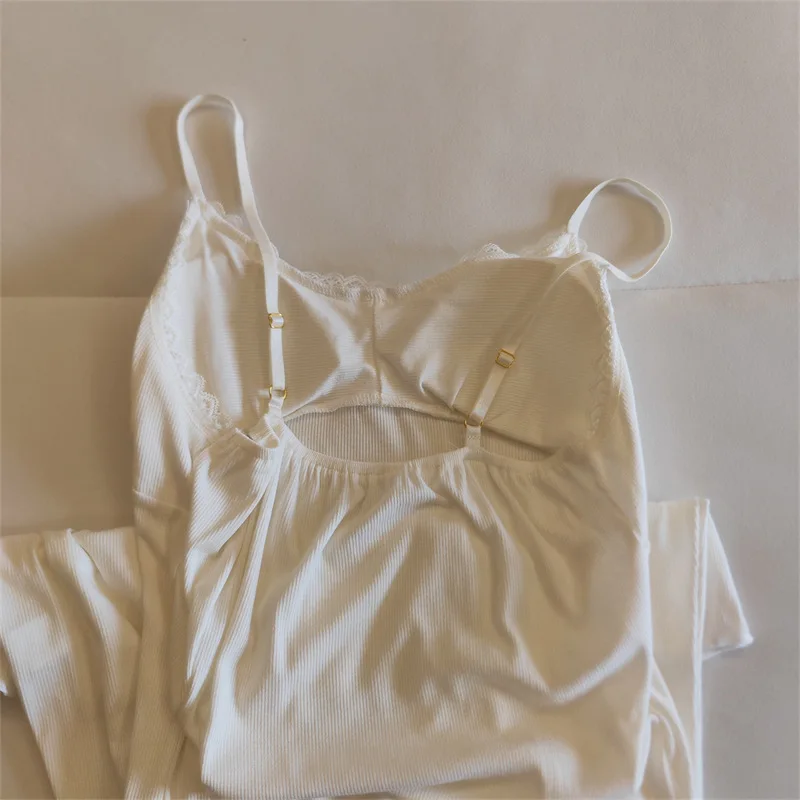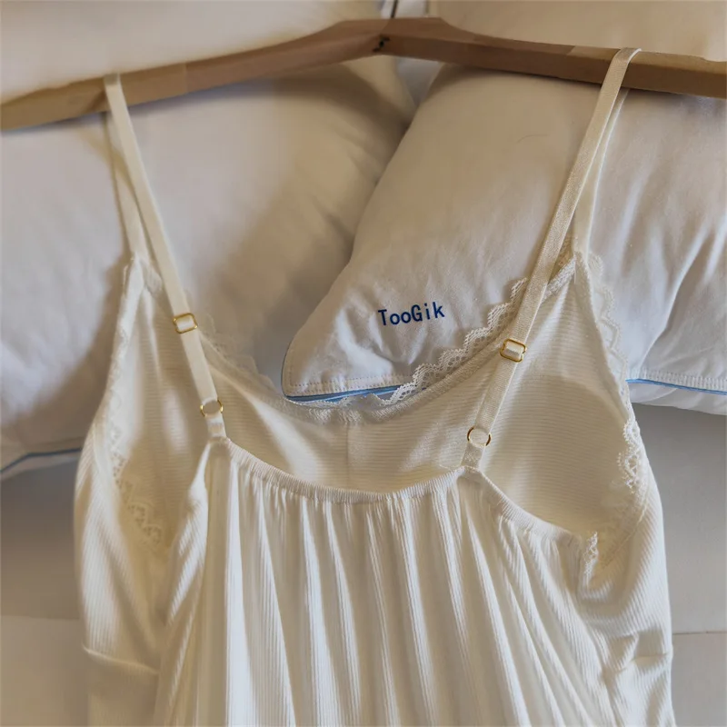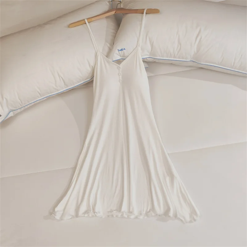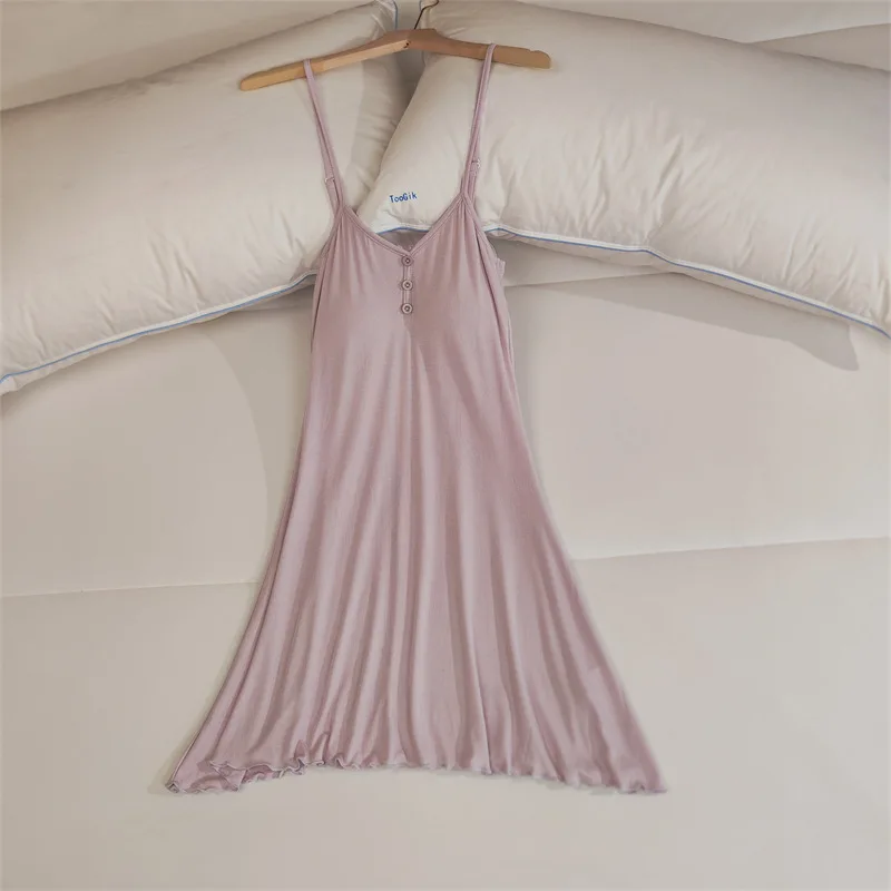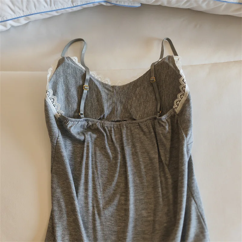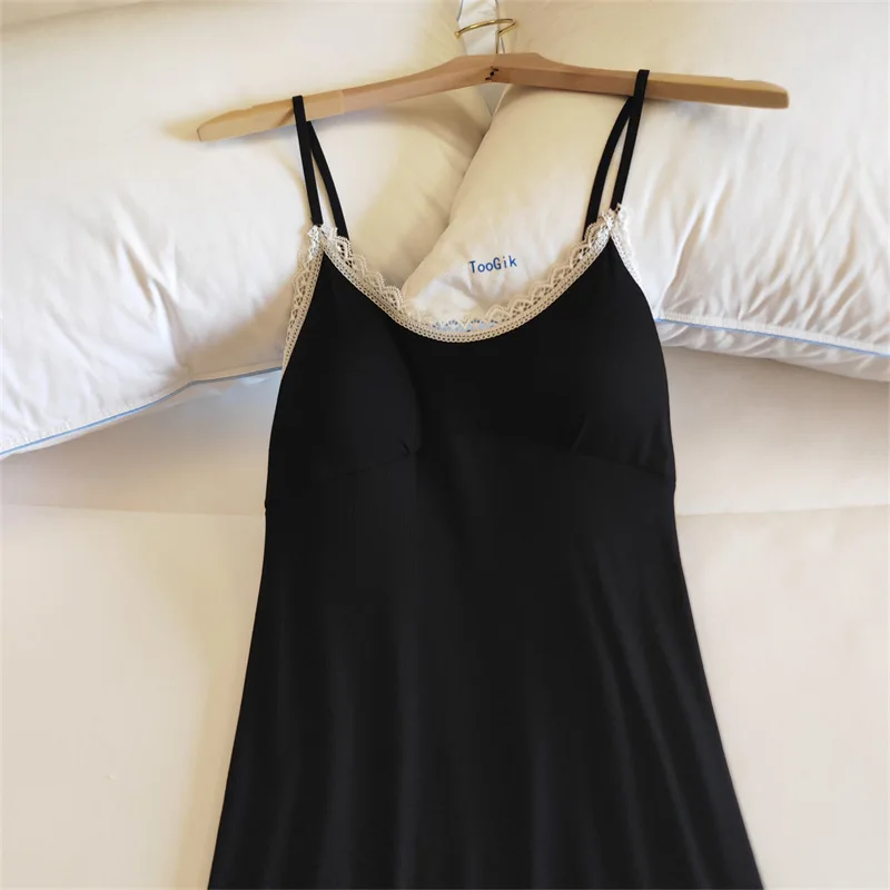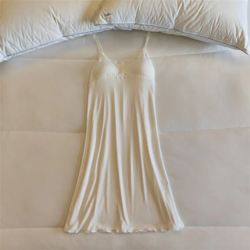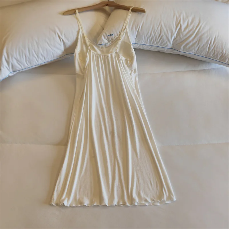 Ladies Summer Nightdress Sexy V-neck Lace Camisole Nightgown Chest Pad Home Wear Sling Dress Modal Comfort Night Shirt Women