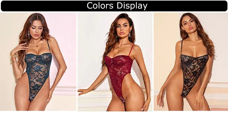 Women's Sexy Lingerie Bodysuit Floral Lace Erotic Costumes Three-Point Underwear Backless Transparent Jumpsuit American Clothing