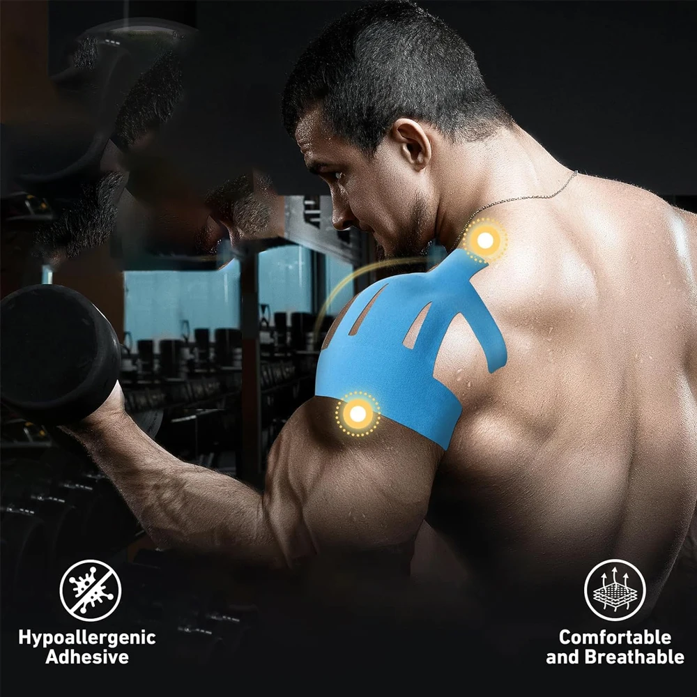 10PCS Precut Kinesiology Tape for Shoulder Pain Relief – Waterproof, Elastic Support for Rotator Cuff & Injury Recovery
