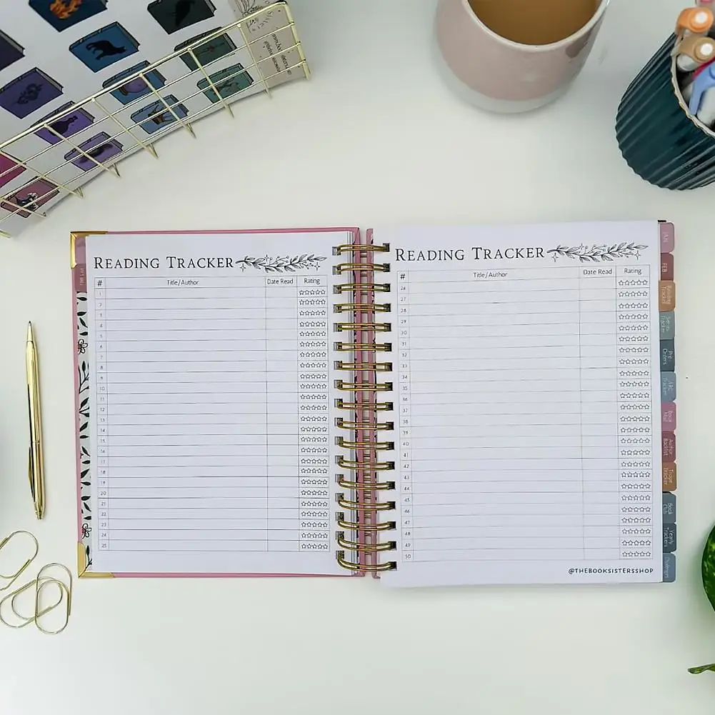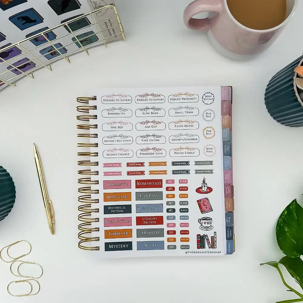 Includes author backlist, trope notes, book club records, 5-star reads & DNF notes, genre summary, yearly stats & recap, and 10 bookish challengesperfect for reflection and goal-setting.